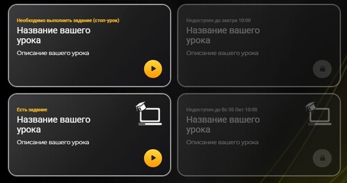 - Высота карточки автоматически адаптируется под длину названия и описаний урока.