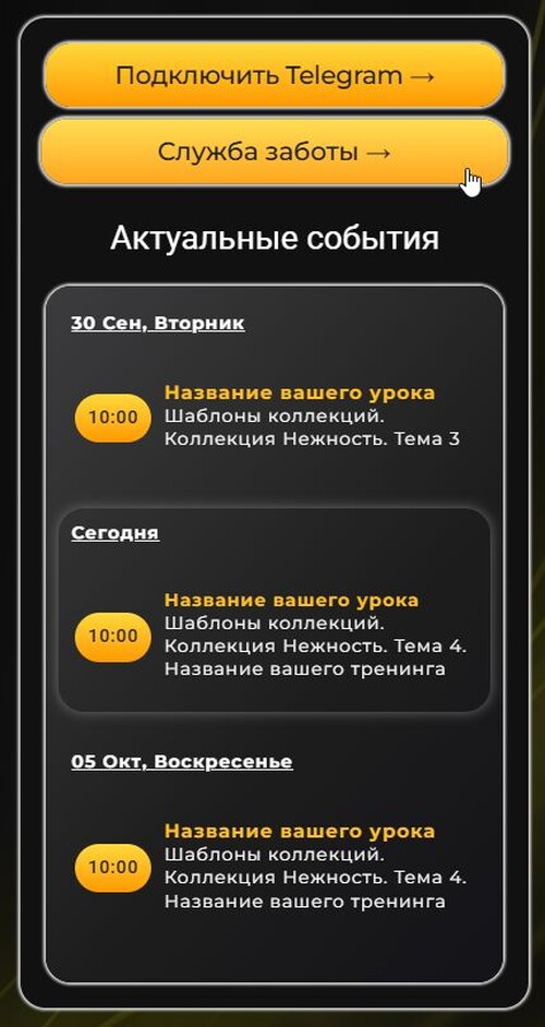- Стильное расписание: Отображение актуальных мероприятий в визуально привлекательной форме. Ваши ученики всегда будут событий.