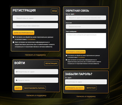 Шаблон страниц авторизации и обратной связи