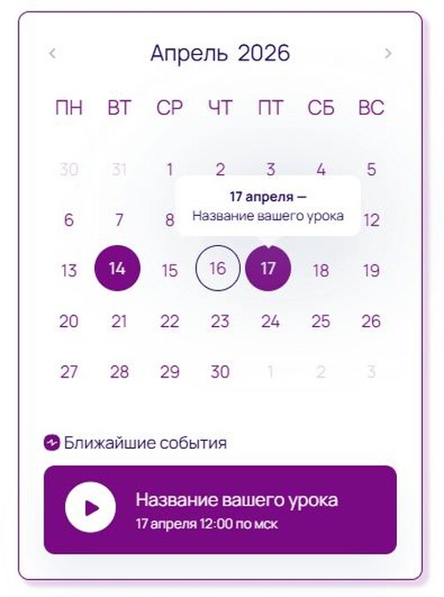 Наглядное и стильное расписания в виде календаря, поможет ученикам не пропускать важные события обучения и станет украшением вашего тренинга.
