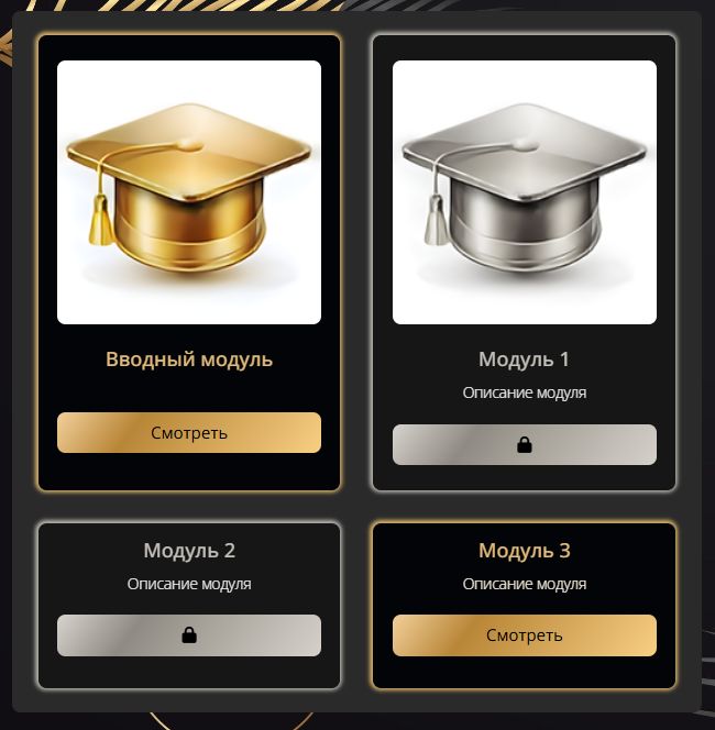 - ✅ Модули и уроки оформлены в едином стиле